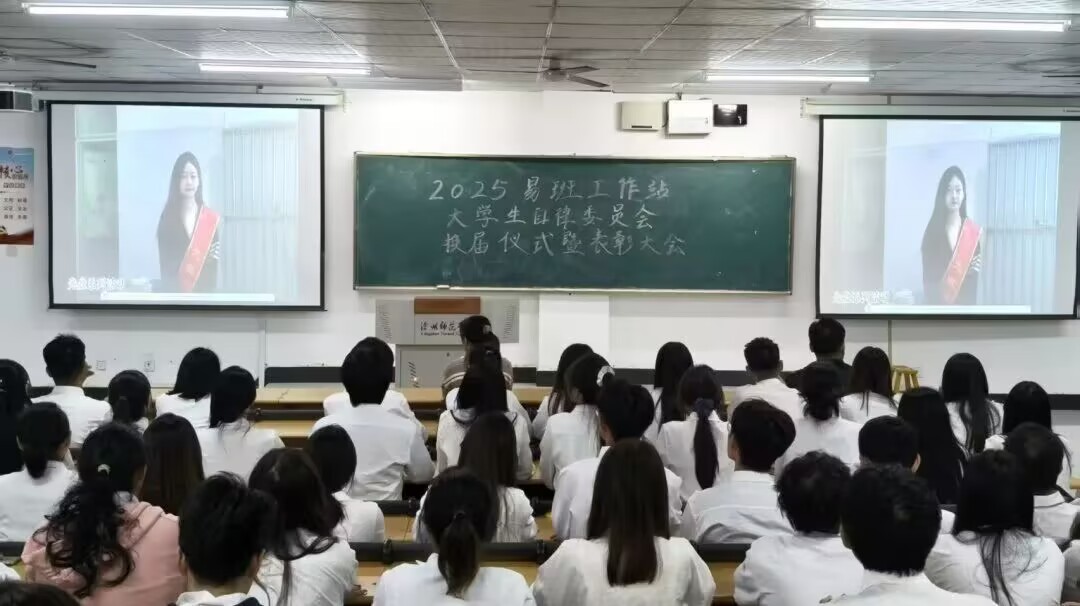 金秋时节,硕果满枝。2025年10月14日,沧州师范学院2025年大学生自律委员会与易班工作站换届仪式暨表彰大会在齐越楼三阶梯教室顺利召开。学生工作处教师郑全盛、刘广月莅临指导,两个组织全体成员齐聚一堂,共忆奋斗时光,见证薪火交接。